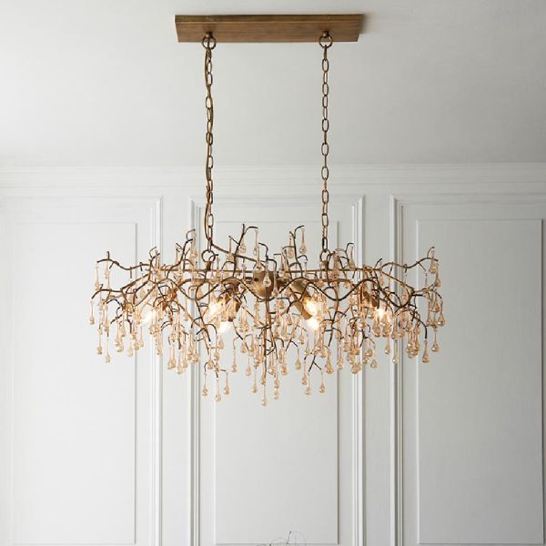 Elevate your interior dcor with the luxurious charm of the Furniture in Fashion Aberdeen Glass Linear Pendant Ceiling Light in Gold. This striking centrepiece combines a sleek gold finish with clear glass shades, creating a sophisticated and contemporary lighting solution for your home. Its linear design is perfect for dining areas, kitchen islands, or living spaces, adding both style and functionality to your dcor. Crafted with premium materials and attention to detail, the Aberdeen pendant light delivers ample illumination while serving as a statement piece. Whether youre hosting guests or creating an intimate atmosphere, this elegant ceiling light transforms your space into a haven of modern elegance. Transform your space with the Furniture in Fashion Aberdeen Glass Linear Pendant Ceiling Light in Golda perfect blend of elegance, functionality, and modern design. FEATURES : Material : Glass Finish : Gold Create a stunning focal point with this organic raindrop chandelier Inspired by nature, this six-light linear pendant features undulating willow branches’ in Aberdeen gold finish and champagne lustre iridescent glass droplets which reflect the light beautifully Striking ornate linear pendant Champagne lustre glass teardrops Height adjustable 1. 5 metre chain with gold cable Perfect for use with E14 LED filament lamps Adds a touch of opulence and blends seamlessly with modern and classic interiors Provides bright, diffused lighting that enhances the ambiance of any room Ideal for placement above dining tables, kitchen islands, or long spaces needing balanced lighting Constructed with durable materials for long-lasting performance and aesthetic appeal Compatible with energy-saving bulbs to reduce power consumption Offers flexibility in installation to suit various ceiling heights and preferences Available at an affordable price Images shown are for illustration purpose only DIMENSIONS : Height : 51-192cm Width : 96cm Depth