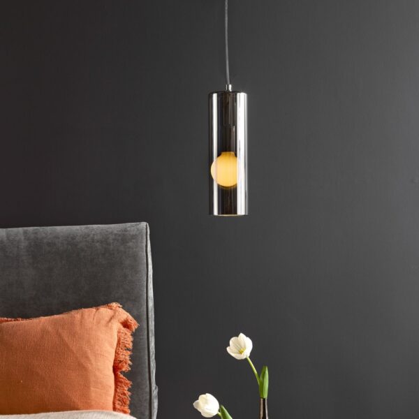 This Dar Lighting Diaz ceiling pendant light offers a contemporary take on the classic pendant light. Its smoked glass shade is simple yet striking, with the clear cable that can be adjusted on installation. Diaz pendant works great in a group other above a kitchen bar or dinning table. FEATURES: * Ceiling pendant light * Polished Chrome finish * Smoked glass shade * Requires 1 lamp * Earthed * Dimmable with suitable lamp /dimmer switch * Height adjustable prior to installation SIZE: * Drop: 340 – 1340 mm * Diameter: 100 mm LAMP: * Requires 1 x ES LED GLS – NOT INCLUDED
