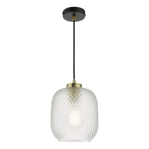 This Dar Tehya ceiling pendant light is finished in matt black with satin brass details. The light features beautiful lozenge-shaped glass, which adds an element of sparkle. Simply stunning in design, this incredible light would look magnificent in both traditional and contemporary interiors. FEATURES: * Ceiling pendant light * Matt Black finish * Satin Brass detail * Requires 1 lamp * Double insulated * Dimmable with suitable lamp / dimmer switch * Height adjustable prior to installation SIZE: * Drop: 300 – 1270 mm * Diameter: 170 mm BULBS: * Requires 1 x Edison Screw LED lamp-NOT INCLUDED