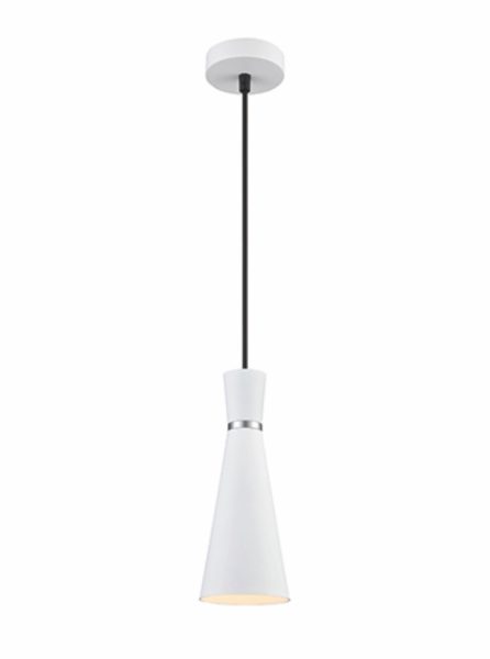 This Franklite Happy 1 light ceiling pendant light features bold lines and angular shapes to lend a sophisticated, contemporary touch that looks fantastic against bare brickwork. This contemporary ceiling light boasts industrial appeal with a satin white finish and cone-shaped shade. The fitting has a matching ceiling rose and a coordinating black cable. FEATURES: * Ceiling pendant light * Satin White finish * Double insulated * Takes 1 lamp * Fully height adjustable at the point of installation SIZE: * Diameter: 100 mm * Min height: 360 mm * Max height: 1750 mm BULBS: * Takes 1 x 11 watt LED Edison Screw GLS – NOT INCLUDED