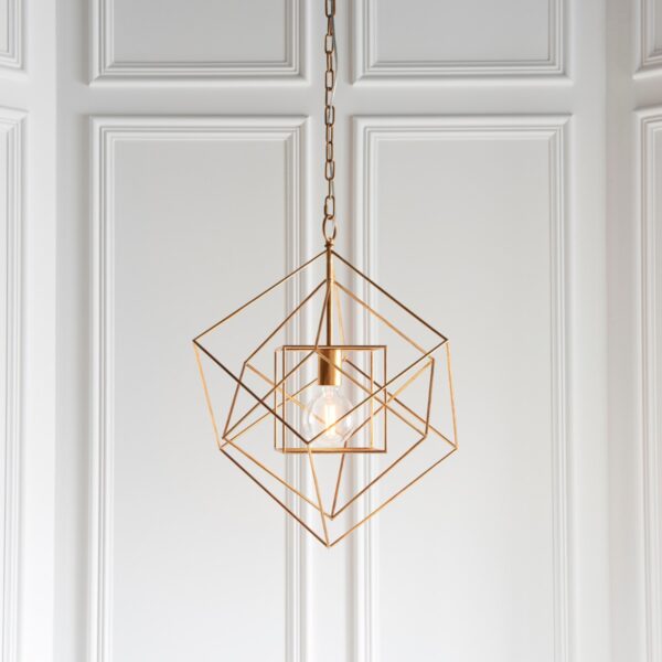 Geometric 1 Light Medium Ceiling Pendant Light In Antique Gold Leaf Finish