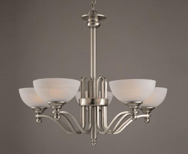 PG00532/5 CONTEMPORARY Five Light Satin Nickel Pendant Ceiling Fitting With Alabaster Glass Shades FEATURES * Pendant ceiling fitting * 5 bulbs (not included) * Satin nickel finish * With alabaster glass shades SIZE * Height: 610mm * Diameter: 700mm BULBS * Takes 5 x 60 watt Golf Edison Screw Lamps (NOT INCLUDED) ORDER CODE * PG00532/5