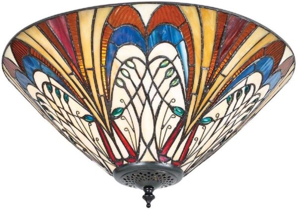 Interiors 1900 70241 Hector Tiffany Medium 2 Light Flush Ceiling Light In Dark Bronze