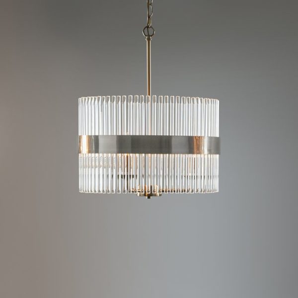 The stylish Laura Ashley Alexa 3 Light Ceiling Pendant will transform a room into a space that oozes glamour and opulence. The eye-catching centrepiece is an effortlessly sophisticated lighting option that is always in style. The fitting features glass rods and polished nickel finish, has a matching finish ceiling rose and hanging chain plus a discreet clear cable.  Features Ceiling pendant light Polished Nickel finish Clear glass rods Takes 3 lamps Class 1 (earthed) Dimmable with suitable lamp / dimmer switch Height adjustable at the point of installation  Size Drop: 56 – 156 cm Diameter: 40 cm  Bulbs Requires 3 x 40 watt max Small Edison Screw Candle Lamps (not included) Ideal for use with LED Lamps
