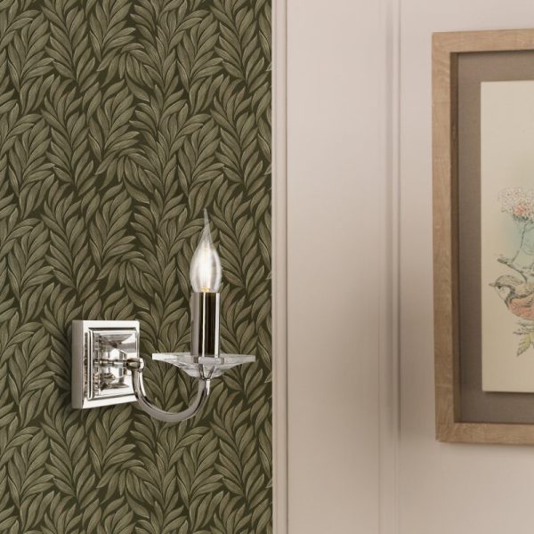 The stylish Laura Ashley Carson wall light is beautifully crafted. The fitting features a vintage Polished Nickel finish and the square candle dish is in clear, cut crystal, hand polished to give a smooth surface. The light will add character to both modern and traditional interiors.  Features Wall light Polished Nickel finish Crystal glass Class 1 (earthed) Takes 1 lamp Dimmable with suitable lamp / dimmer switch  Size Height: 14 cm Width: 10 cm Depth: 19 cm  Bulbs Requires 1 x 40 watt max Small Edison Screw Candle Lamp (not included) Ideal for use with LED lamps