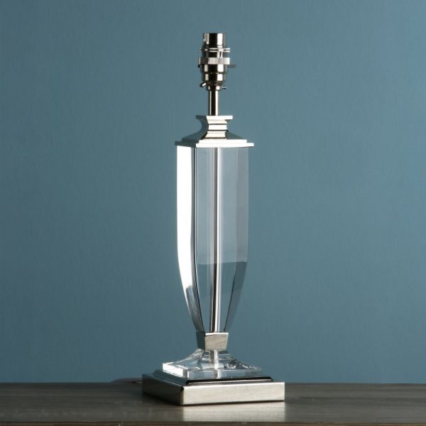The stylish Laura Ashley Carson table lamp base surely will be an eye-catching addition to the room. The lamp features a clear, cut crystal body, hand polished to give a smooth surface. Standing foursquare, the metal base supports the column-shaped body, reminiscent of the shape of a slender classical vase. This handsome table lamp sports a warm Polished Nickel finish. This table lamp base comes with a coordinating white cable with a convenient push bar switch. Optional shades to be purchased separately. Features Table lamp base only Polished Nickel finish Crystal glass Class 1 (earthed) Takes 1 lamp Push bar switch White cable Optional shades available (please call the office) Size Height: 37 cm Width: 11.5 cm Depth: 11.5 cm Bulbs Requires 1 x 60 watt max B22 GLS (not included) Ideal for use with LED lamps