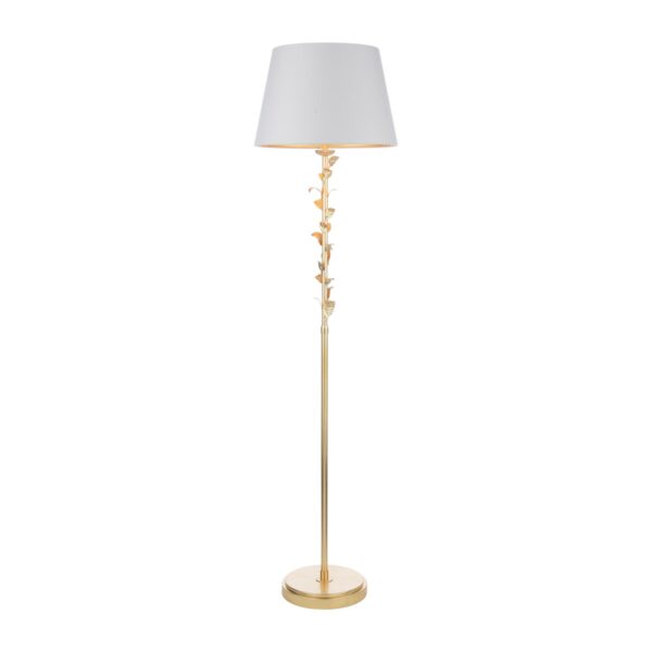 The Laura Ashley Halton is a floor lamp that is going to create an on-trend artisan statement in any interior. This ornate fitting is inspired by nature, featuring delicately applied gold leaf finish and cream cotton shade. The matching items are available in a range for creating an outstanding look. FEATURES: * Floor lamp * Distressed Gold leaf * Braided gold cable * Cream cotton shade * Gold metallic lining * Requires 1 lamp * Double insulated * In line foot switch SIZE: * Height: 155cm * Diameter: 40cm * Shade height: 26cm * Shade diameter: 40cm * Base height: 139cm * Base diameter: 25cm LAMP: * Requires 1 x ES LED GLS – NOT INCLUDED