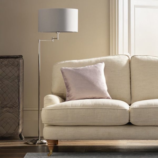 Laura Ashley Marlowe Polished Nickel Swing Arm Floor Lamp With Grey Cotton Shade