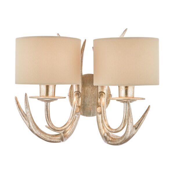 Laura Ashley Mulroy Antler Double Wall Light In Champagne Finish With Natural Shades