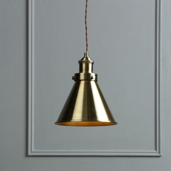 The Laura Ashley Rufus is a single ceiling pendant light that fits effortlessly into kitchens and dens. Bold lines and angular shapes lend a sophisticated, contemporary touch that looks fantastic against bare brickwork. This contemporary hanging ceiling light boasts industrial appeal with an Antique Brass finish and cone-shapedmetal shade. The fitting has a matching ceiling rose and a coordinating twisted braid cable. Height is adjustable at the point of installation. Features Ceiling pendant light Antique Brass finish Takes 1 lamp Class 2 (double insulated) Dimmable with suitable lamp / dimmer switch Height adjustable at the point of installation Size: Drop: 24- 124 cm Diameter: 19 cm Bulbs Requires 1 x 40 watt max Edison Screw GLS (not included) Ideal for use with LED lamps