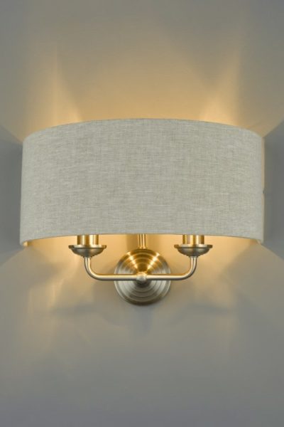 Laura Ashley Sorrento 2 Light Wall Light In Brushed Chrome With Natural Shade