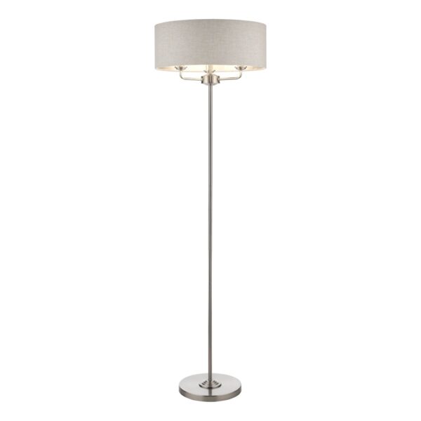Laura Ashley Sorrento 3 Light Floor Lamp in Satin Nickel with Natural Shade