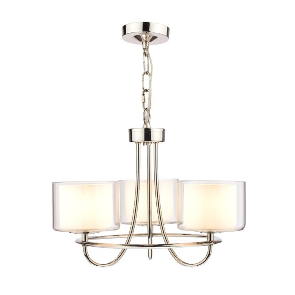 Laura Ashley Southwell 3 Light Chandelier In Polished Nickel With Clear And Opal Glass Shades