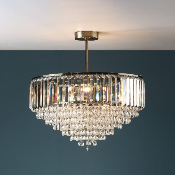 Laura Ashley Vienna 5 Light Semi Flush Ceiling Light In Antique Brass With Crystal Glass