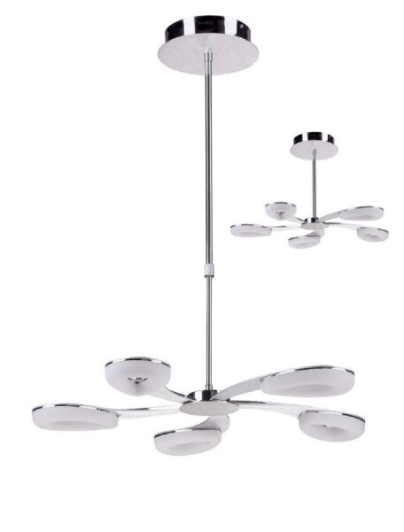 This Mantra Juno LED five light telescopic pendant light can also be mounted as a semi flush ceiling light and is finished in satin aluminium.ᅠ The acrylic teardrop is without fuss or elaborate detail and would make this light an incredible addition to any room. Product code: M8252 FEATURES: * Finished in satin aluminium * Can be mounted as a pendant or a semi flush ceiling light * Not dimmable * Alternative finish and other lights available (please see website) * Earthed SIZE: * Height as semi flush – 270mm * Minimum height as pendant – 560mm * Maximum height as pendant – 960mm * Diameter – 650mm BULBS: * Takes 25 watt, 3000K Warm White, 2700 Lumen LEDs – Integral