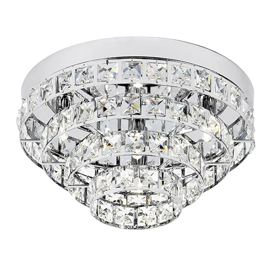 4 light semi flush ceiling fitting, finished in polished chrome with glass faceted beads. Dimmable, suitable for use with LED lamps and ideal for fitting to low ceilings. FEATURES : Material : Metal, Crystal Finish : Chrome, Grey 4 x 33W G9 clear capsule (bulb not included) Chrome plated finished metalwork Clear K5 faceted crystals Perfect design for low ceilings Perfect for use with G9 LED lamps Available at an affordable price Images shown are for illustration purpose only DIMENSIONS : Projection : 165mm Diameter : 300mm