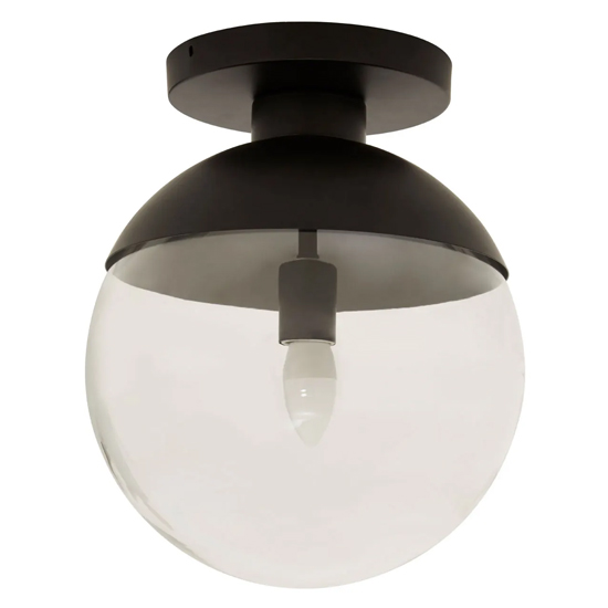 The Rocklin ceiling light is a timeless classic which lends simplicity to the wall and illuminates the area with style. FEATURES : Material : Clear Glass, Metal Finish : Clear, Black Globe shape Vintage industrial style Clear glass shade Minimal Sturdy metal Elegant and practical, this lighting fixture exhibits vintage industrial charm with its minimal design and construction The fusion of metal in the black finish with a clear-glass shade of this ceiling light will bring a warm glow to the hallway and dining room Available at an affordable price Images shown are for illustration purpose only DIMENSIONS : Height : 37cm Width : 30cm Depth : 30cm