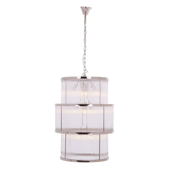 Salas Large Ribbed Pattern 3 Tier Chandelier Light In Nickel