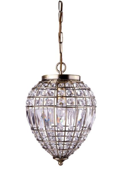 This Searchlight Pendants 1 light mirrored ceiling light is finished in antique brass and has crystal glass detail.ᅠ The frame of this light is antique brass and the crystal glass droplets are individially placed within this, creating a stunning lighting effect when illuminated.ᅠ Due to the design of this light, it would look equally as striking in both modern and traditional settings. Product code: 3991AB FEATURES: * Finished in brass * Fully height adjustable at the point of installation * Earthed * Dimmable SIZE: * Height – 340mm * Total height with chain – 930mm * Diameter – 230mm BULBS: * Takes 1x 60 watt E27 Edison Screw Bulb – Not included.